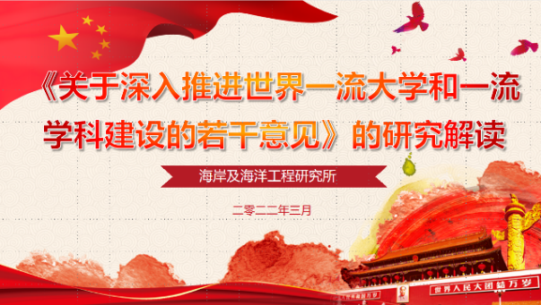 近日,根据学校工作部署,港口海岸与近海工程学院组织开展了《关于深入推进世界一流大学和一流学科建设的若干意见》(以下简称《若干意见》)系列学习研讨活动。