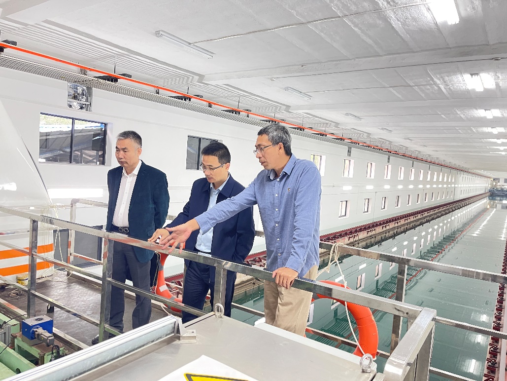 会前,我院一行在华中科技大学船舶与海洋工程学院船池主任冯大奎带领下参观了船模拖拽水池实验室。