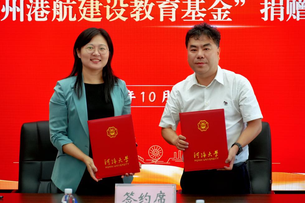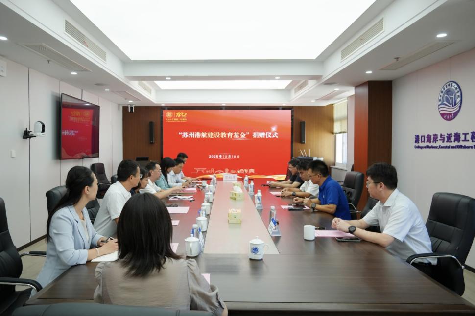 10月10日,“苏州港航建设教育基金”捐赠签约仪式在河海大学西康路校区举行。河海大学副校长陈达,港口及航道工程专业1996级校友、苏州港航建设工程有限公司总经理、苏州校友会常务副会长罗松涛,中交上海航道局有限公司江苏交通建设工程分公司党委书记张骏,江苏壹路技术咨询有限公司总经理吴梓愚,苏州校友会执行会长雷秋生,离退休工作处处长黄林楠,河海里尔学院院长朱其志,港口海岸与近海工程学院院长龚政、副书记王玲等出席仪式。仪式由港口海岸与近海工程学院党委书记张雪刚主持。