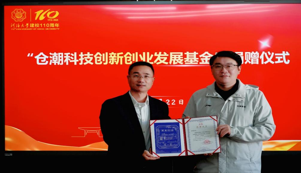 情系母校,赋能创新。在我校喜迎建校110周年华诞之际,港口海岸与近海工程学院2022届优秀博士校友、连云港仓潮智绘科技有限公司董事长程晨博士慷慨捐资50万元,设立“仓潮科技创新创业发展基金”,以支持母院创新创业人才培养,为母校华诞献上了一份情深意重的贺礼。
