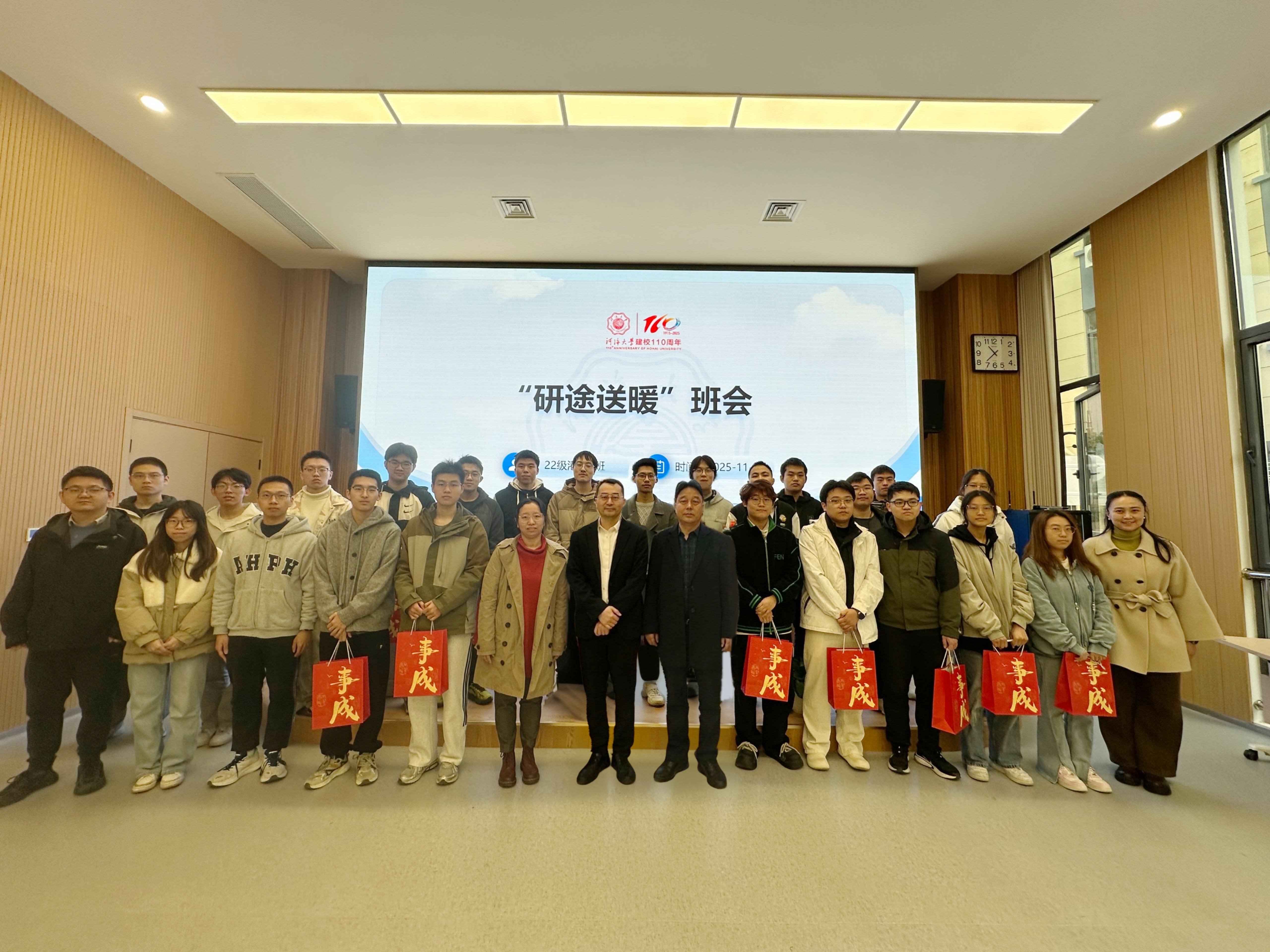 2025年11月17日上午,2022级港航4班“研途送暖”主题班会在西康路校区夏金仙学生服务中心101会议室举行。河海大学副校长陈达、港航院党委书记张雪刚、港航院党委副书记王玲、党政办刘畅、港航院辅导员顾钰恒出席活动。活动由班导师张炫主持。