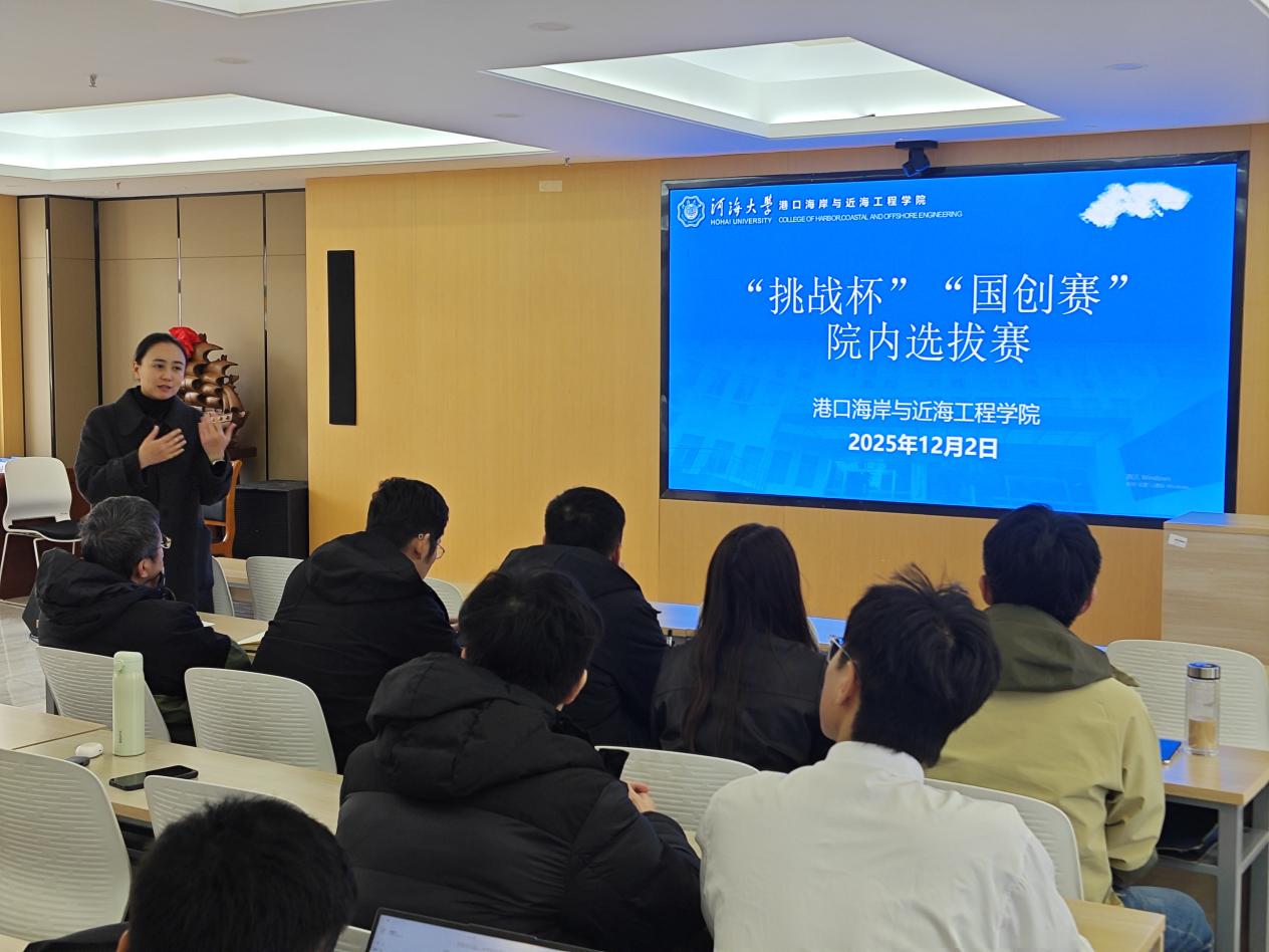 为深化创新创业教育改革,激活学生科研潜能,培育创新型人才,12月2日,我院举办第十五届“挑战杯”中国大学生创业计划竞赛、中国国际大学生创新大赛(2026)院内选拔赛。学院副院长陈永平、管大为,党委副书记王玲,科研导师代表朱瑞虎,双创学院顾煜星出席并担任评委,学院备赛团队及相关老师参会。