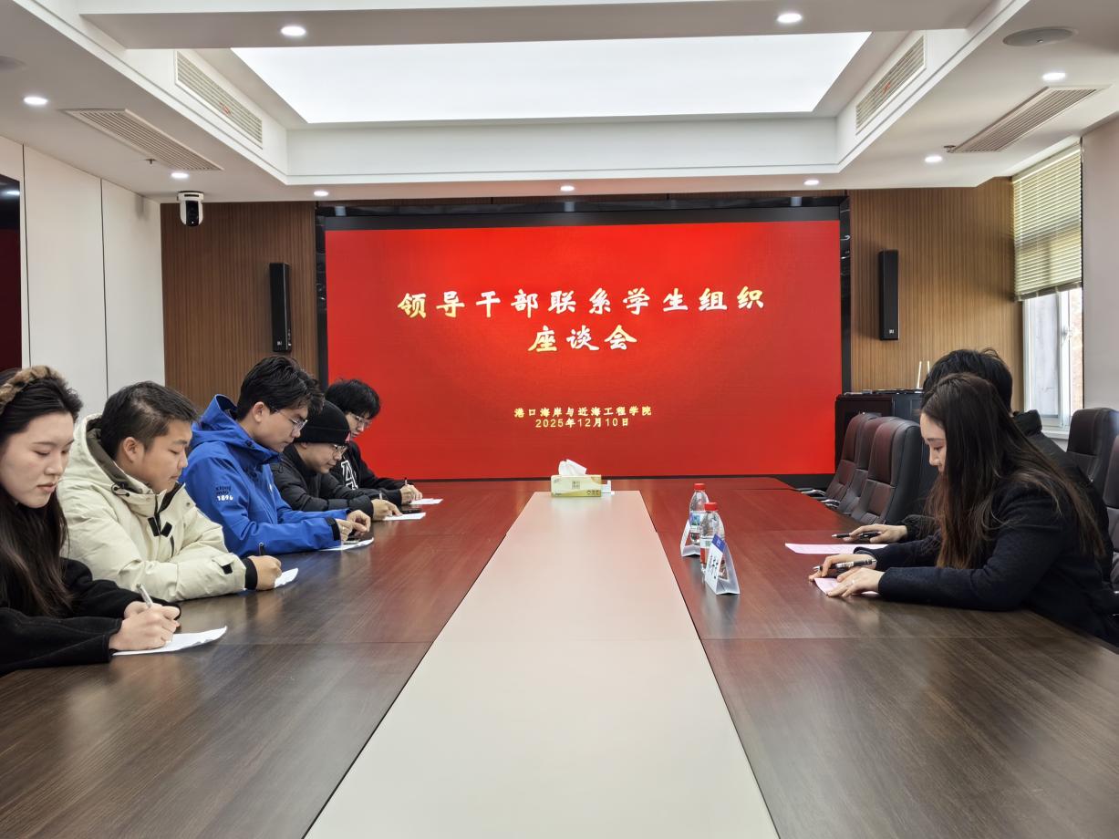 1210日上午,港航学院组织领导干部联系学生组织座谈会,学院党委书记张雪刚、团委书记廖芳艺、学生会主席团及部门负责人参加本次会议。
