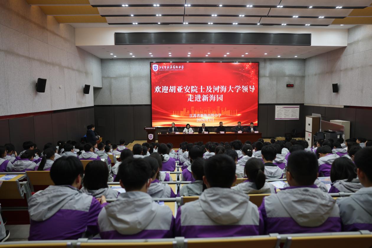 4月16日,胡亚安院士一行莅临新海高中,为高一学生讲授科普讲座,活动由新海高中校长周艳主持,河海大学港航学院院长龚政、党委副书记王玲等参与活动。港航学院博士、“互联网+”全国金奖得主李昊围绕招生宣传与科创作品展示,现场为中学生讲解科创成果,分享河海大学学科优势与人才培养特色。