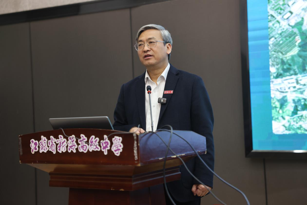 郑金海校长在讲话中回顾两校深厚情谊与合作历程,介绍河海大学以水利为特色、服务国家战略的办学优势与人才培养成果。他表示,河海大学将充分发挥学科与资源优势,在智慧海洋科学高中创建、特色课程建设、师资培训、科普资源共享等方面全力支持新海高中发展,持续深化大中衔接、协同共育,为国家培养更多拔尖创新人才。